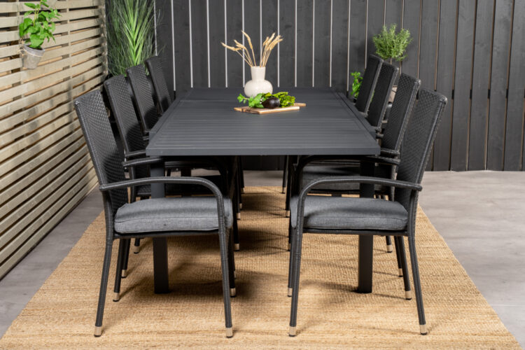 Möblera uteplatsen snyggt, smart och slitstarkt med en designikon från serien Anna. Den här stolen är stapelbar och kommer i en läcker svart kulör som står sig över tid och är enkel att matcha med övrig möblering. Välkomna sommarens uteliv och trivsamma måltider på altanen!