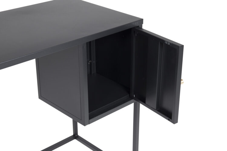 Bakal, ett nätt skrivbord i modern industriell design med integrerad ram samt ett fyrkantigt mindre skåp. En mindre dörr med dold förvaring och en avlastningsyta placerad i högra hörnet tillverkad i vit pulverlackerad stål. Dörren har en mässingfärgad knopp. Mått: Längd: 95 cm, Bredd: 45 cm, Höjd: 50 cm. Lättare montering krävs.