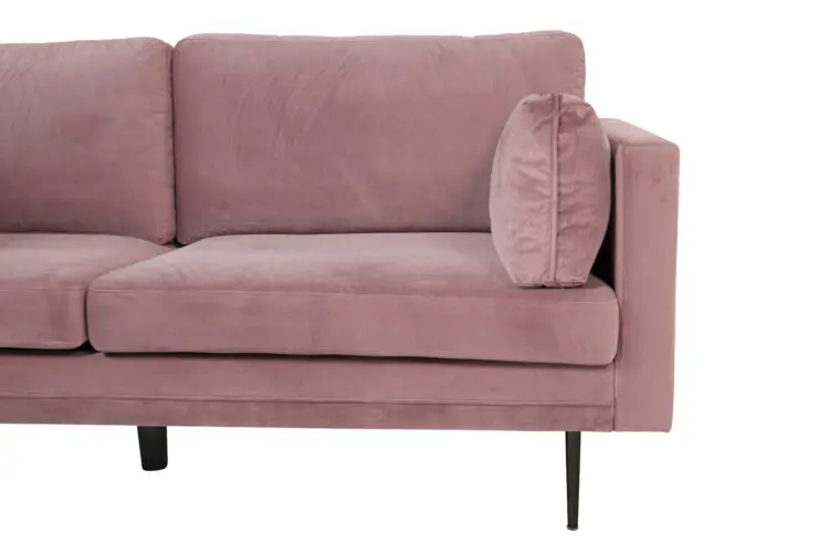Låt det antika möta det nymodiga! En elegant 2-3-sits soffa i serien Boom erbjuder både stilren design och hög sittkomfort. Den här bekväma soffan är en stilikon med sin raka nordiska form och modernt höga armstöd. Den stilrena gammalrosa sammetsklädseln och cylinderformade metallbenen skapar ett tidlöst uttryck som garanterat kommer försköna ditt hem.