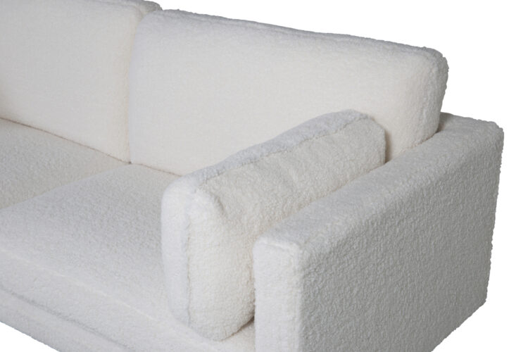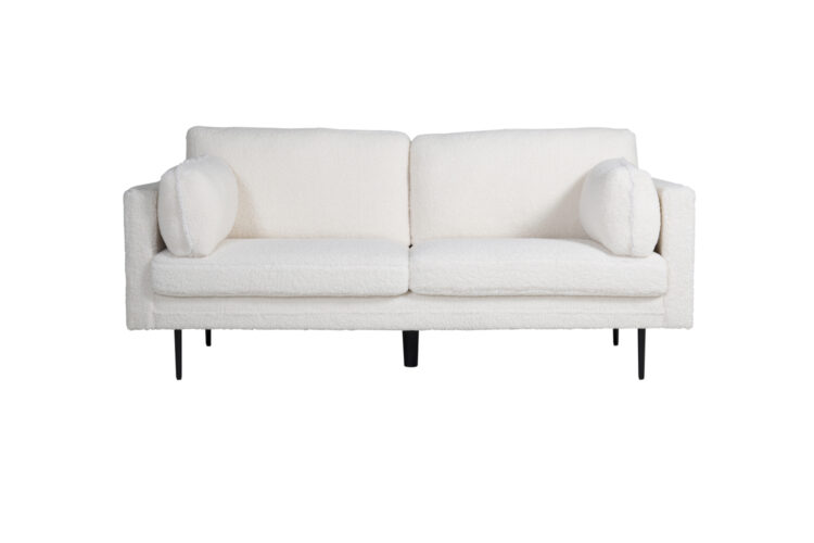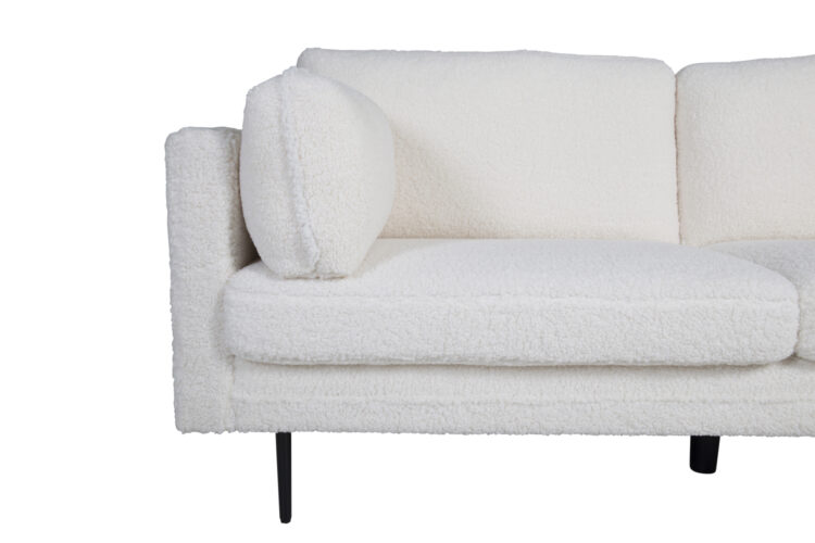 Vad är en soffdröm om inte den här stilrena och moderna 2-3 sits soffan i mjuk, vit teddyklädsel? Vår bekväma soffa i serien Boom inger en otroligt värmande och inbjudande känsla till ditt hem och kommer garanterat förlänga soffstunderna. Designen är tidlös med raka nordiska former och smala metallben i svart.