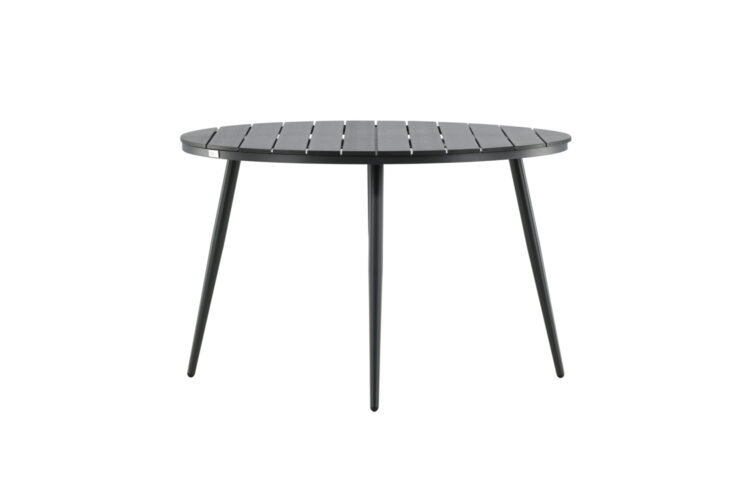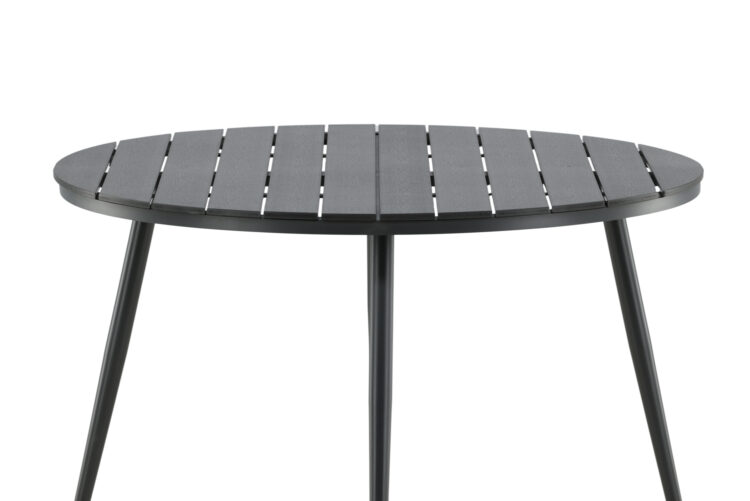 Ett runt matbord är perfekt för dig som vill skapa en trivsam, social och inbjudande känsla till uterummet eller altanen! Här får samtal och skratt flöda fritt kring ett stilrent matbord i klassisk look. Matbordet har en svart bordsskiva i aintwood och ett klassiskt underrede i svart aluminium – Gör er redo för utelivet och låt tiden här bli dagens höjdpunkt!