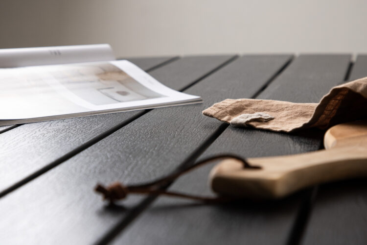 Materialet är framtaget för att användas utomhus då det är väderbeständigt och står emot både fukt och mögel. Aintwood är därför ett optimalt material för utomhusmöbler. Undvik skador på bordet genom att använda underlägg och låta bli att placera varma föremål direkt på ytan.