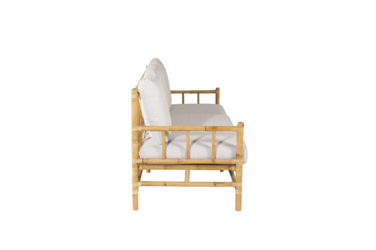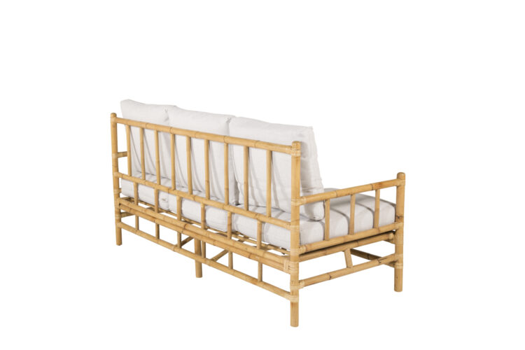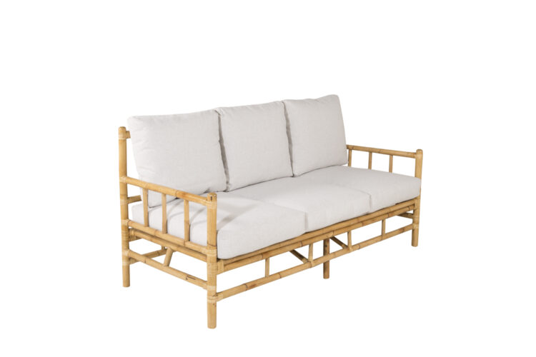 Möblera uteplatsen med en klassisk bambusoffa i lyxig look från serien Cane! Denna bekväma tresits soffan skapar en inbjudande och tropisk känsla med sin genomtänka helhetsdesign. Tillhörande vita dynor är av mjukt polyestertyg. Stommen är tillverkad av naturfärgad bambu och det naturliga materialet ger varje enskild möbel en unik karaktär. En snygg och smart utomhussoffa helt enkelt som drar blickarna till sig och förhöjer bekvämligheten en sen sommarkväll.