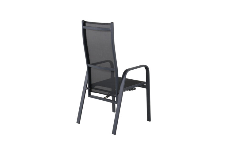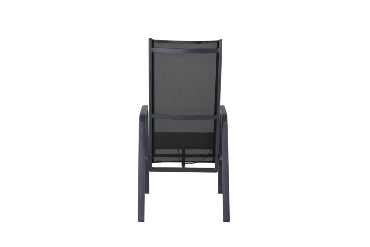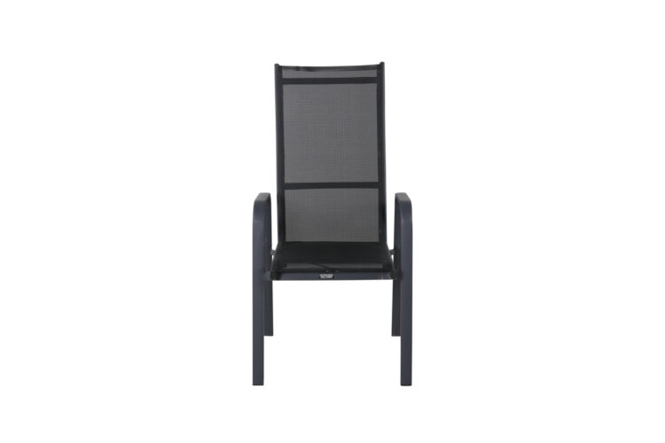 Copacabana, en modern stapelbar karmstol i svart kulör som gör sig utmärkt vid matbordet på altanen. Stolens ryggstöd går att fälla vilket gör att den är väldigt bekväm och praktisk. Njut av sommaren på allra bästa sätt!