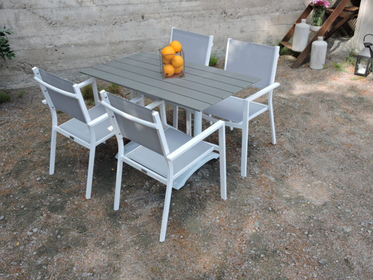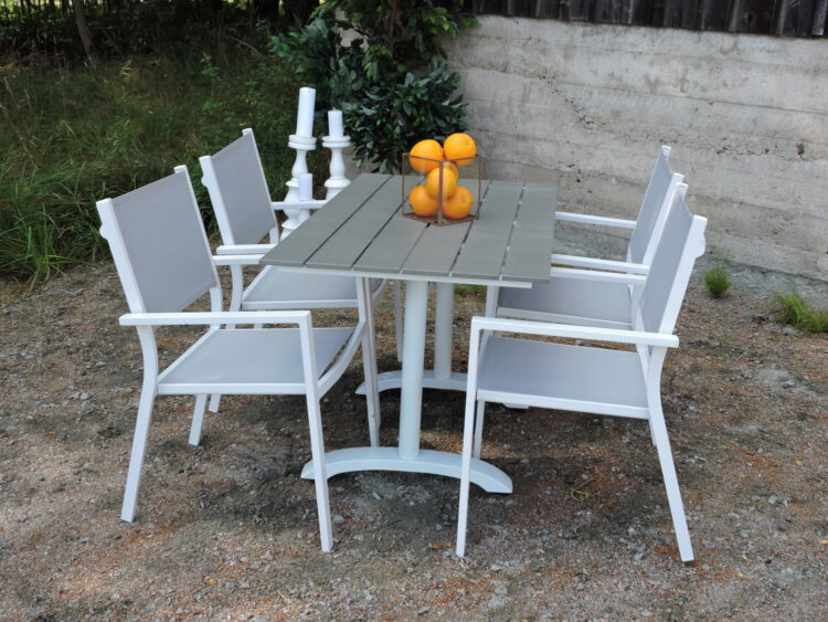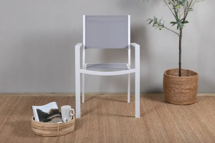 Copacabana i sin industriella och stilrena design gör sig alldeles ypperligt tillsammans med andra utemöbler. Dess vita konstruktion i aluminium och grå sits i textilene skapar ett härligt lyster och ger dig en praktisk matstol som håller över tid. Bjud in till många sociala stunder i sommar!