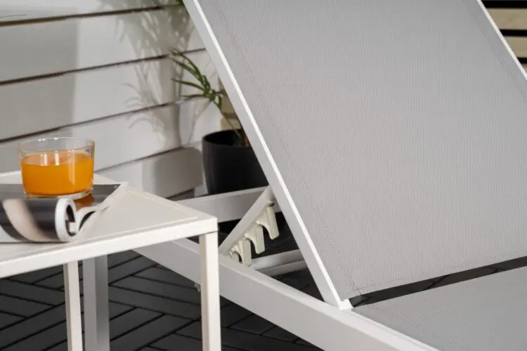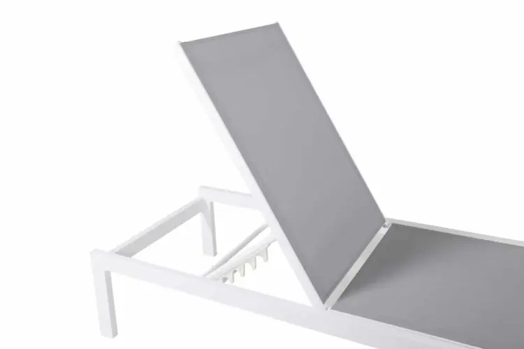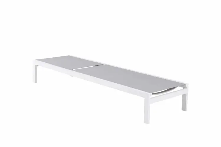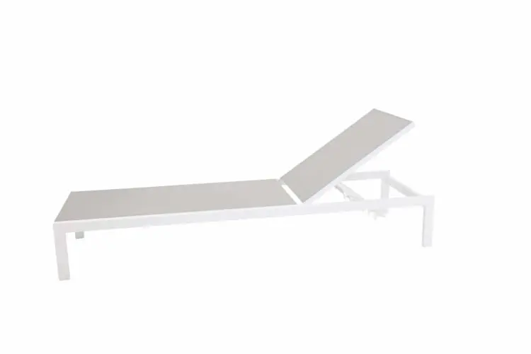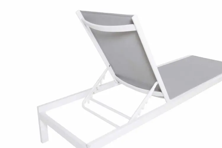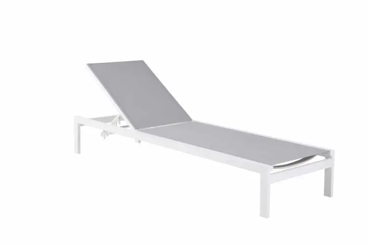 Klassisk solsäng i vitlackerad alumnium. Solsängens ryggstöd går att justera – njut av en skön tupplur eller sitt bekvämt och läs en bra bok!