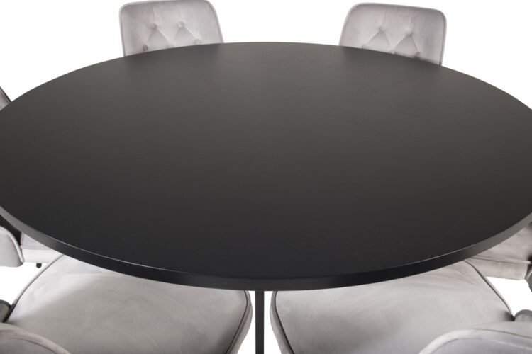 Copenhagen, vårt omtyckta runda Furniture Fashion matbord med en vacker bordsskiva i MDF och ett dekorativt, cylinderformat underrede i svart metall. Bordet är genomgående i elegant svart kulör vilket ger rummet ett pampigt och kaxigt uttryck men också enkelt att matcha med övrig inredning. Sätt din personliga prägel på inredningen och skapa ett läckert blickfång i ditt vardagsrum!