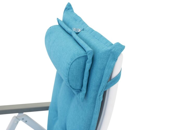 Klassisk och stilren positionsdyna i turkost, försedd med kudde och remmar. Remmarna hjälper till att hålla dynan på plats. Njut ordentligt av dina härliga sommardagar!