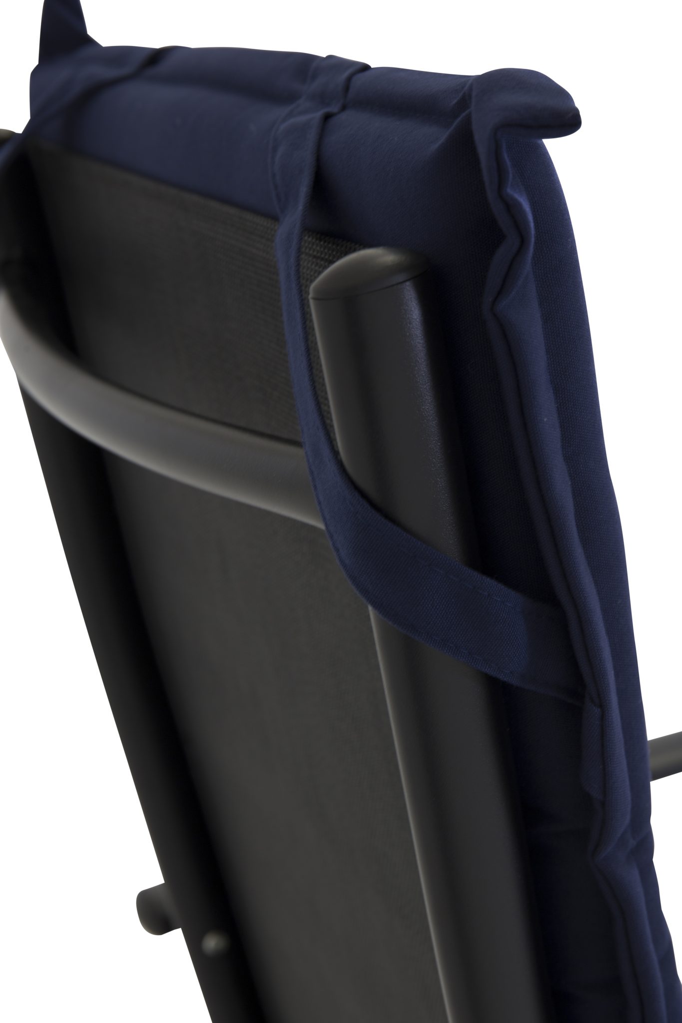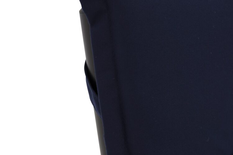 Mörkblå stolsdyna anpassad för våra fällbara stolar. På baksidan finns det två hängen som hjälper dynan att hålla sig på plats ordentligt.