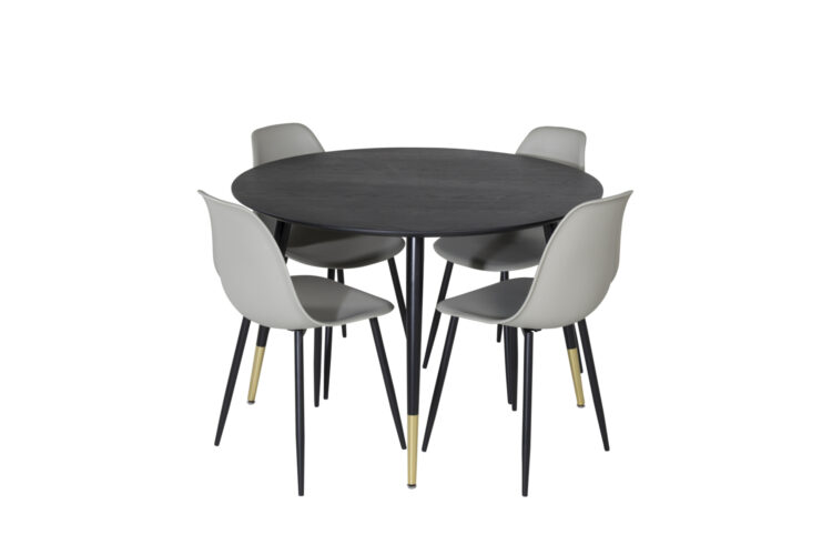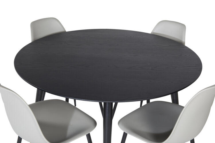 Skapa en charmig mittpunkt för dig och din familj att samlas runt! Vårt runda matbord i serien Dipp har en stilren bordsskiva i MDF och lätt utsvängda bordsben i metall. Bordet är genomgående i svart kulör vilket ger en modern och lyxig känsla till rummet. Möblera köket eller vardagsrummet smart och snyggt och njut av trivsamma måltider där ingen hamnar på kanten!