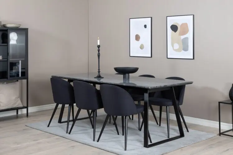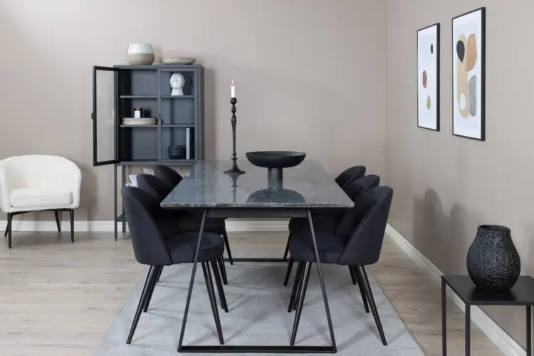 Skapa en modern mittpunkt att samla familjen omkring! Det här läckra matbordet från serien Estelle har en blank bordsskiva i vacker marmor och ett underrede i svart metall. Matbordet ger hemmet ett lyft med sin stilrena marmor och är enkel att matcha med ett par stilrena matstolar.