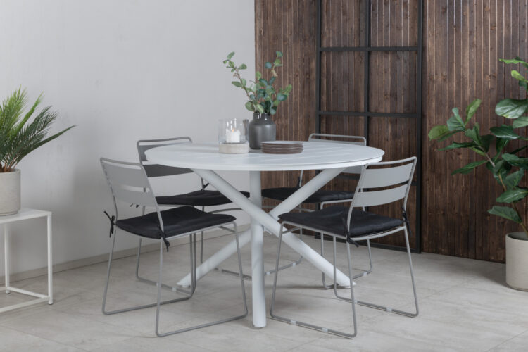 Lina är en nätt och enkel stol i behaglig grå kulör, som passar till alla sorters matbord. En stol i slitstarkt stål som passar utmärkt på uteplatsen såväl som i trädgården. Skapa en härlig känsla på uteplatsen med en lättanpassad stol med stilren design. Dynor finns att köpa till.