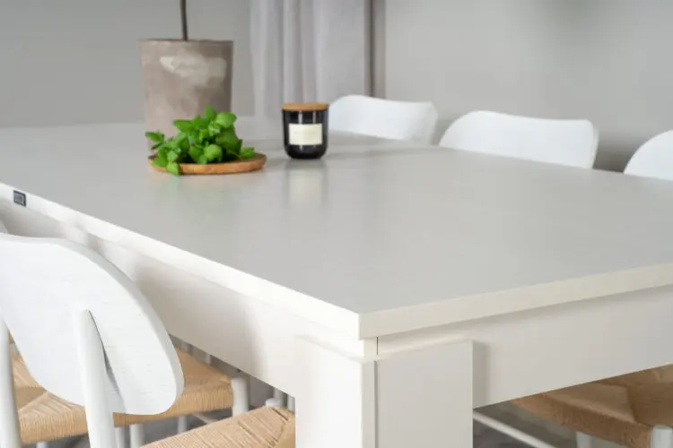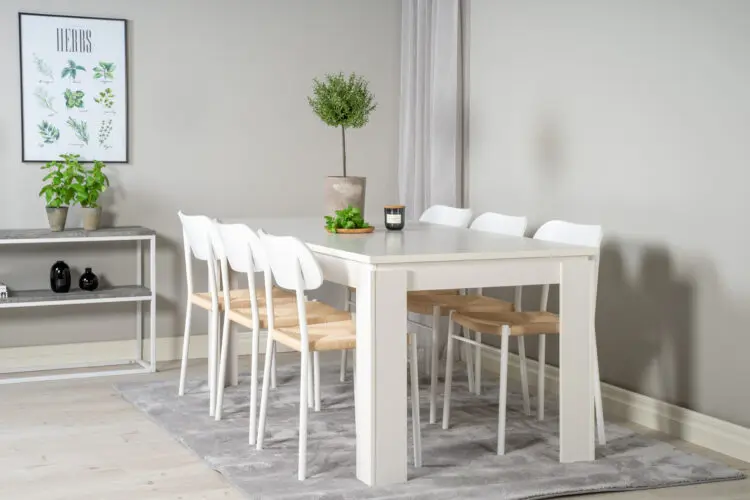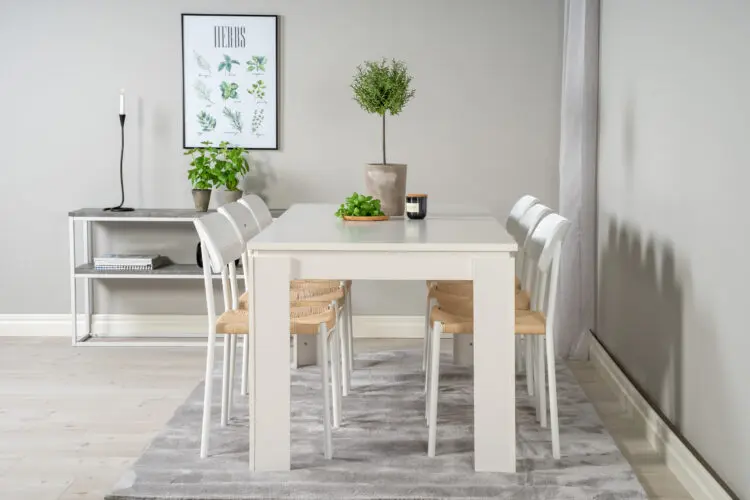 Lind, vårt robusta rektangulära matbord i skandinavisk design som passar perfekt både till vardag och fest. Bordsskivan har en smäcker cement-look och de vita bordsbenen ger ett stadigt intryck. Skapa en elegant tyngd i hemmets hjärta med ett matbord som står sig över tid och bjud in till många sociala stunder framöver.