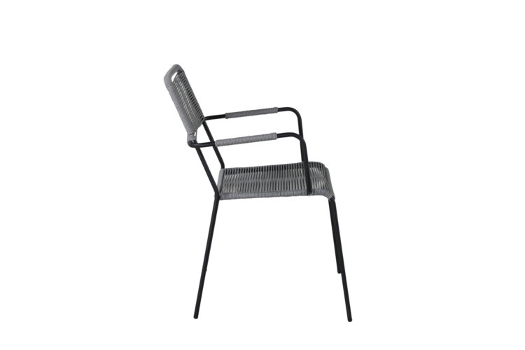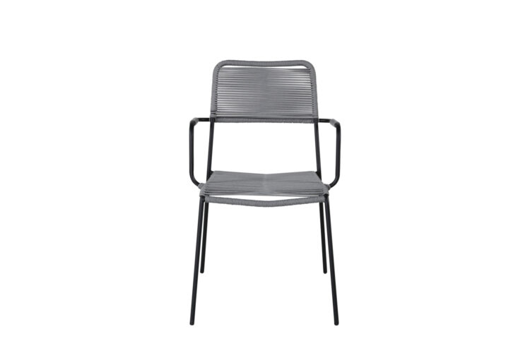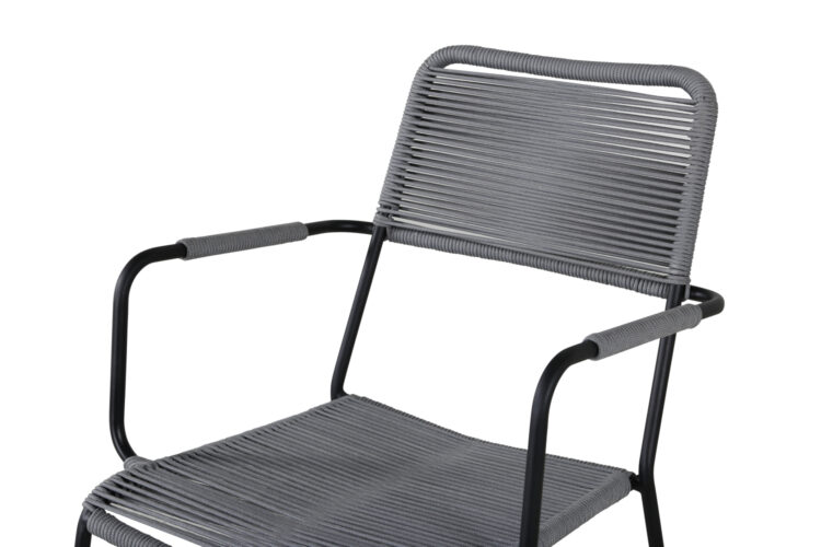 Möblera uteplatsen i modern grå kulör med eleganta matstolar från serien Lindos. Armstöden är tillverkade i svart aluminiumkonstruktion och sitsen i grått vävt rep. Lindos är en riktig designikon som passar både i klassiska och moderna miljöer. Bjud in till många sociala stunder framöver!