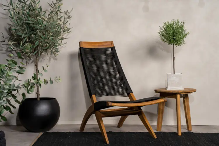 Att matcha svart och trä känns bara helt rätt! Vår loungestol utan armstöd i Little John-serien är en riktig designikon. Stolen blir garanterat ett blickfång på altanen, tack vare sin pampiga konstruktion i akacia och en sits i slitstarkt rep.