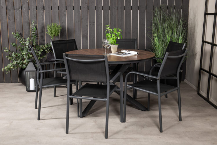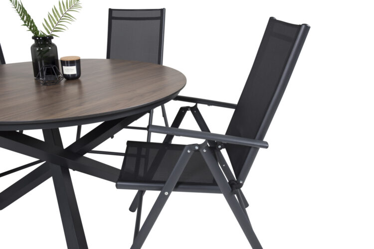 Ett runt matbord passar utmärkt om du vill skapa en inbjudande och trivsam atmosfär på din uteplats – här hamnar ingen på kanten! Llama har en vacker bordsskiva i lätt gråmönstrad HPL och ett underrede i svart aluminium, lika slitstarkt som snyggt helt enkelt. Matcha med ett par bekväma matstolar så får du en komplett matgrupp till sommarens alla måltider!
