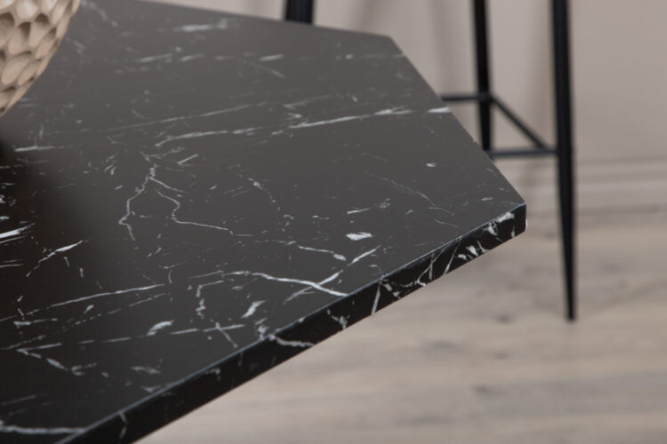 Förhöj inredningskänslan med ett stilsäkert matbord från serien Marbs. Bordet har en sammansatt design med tryckt marmormönster, tillverkat i rökglas och MDF i läcker svart kulör. Den festliga utformningen och robusta stommen skapar ett blickfång som imponerar. Matcha med ett par bekväma matstolar så får du en komplett matgrupp – perfekt för både vardags och fest!