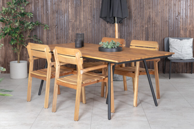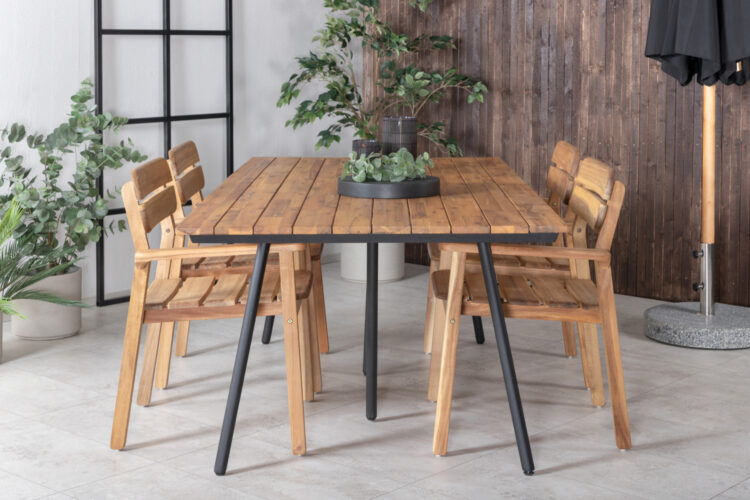 För att dina utemöbler i Akacia/hårdträ ska bibehålla sin finish bör de oljebhandlas. Eftersom träslagen i sig inte är lika feta av naturen behöver de oljas lite då och då, även under säsong. Nyinköpta möbler ska mättas med olja, applicera flera lager efter varandra så maximalt med olja absorberas. Torka bort det som blir överflödigt.