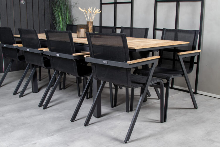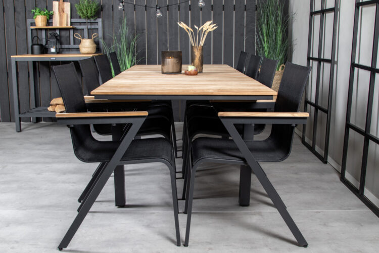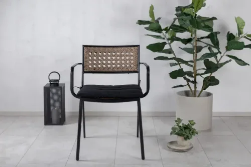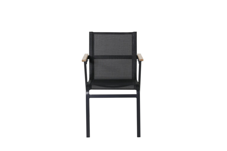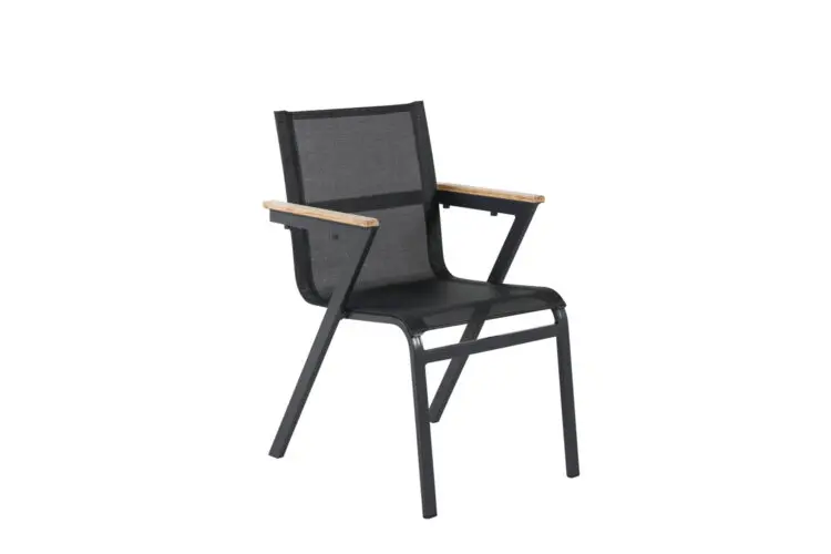 Gör dig redo för sommarens uteliv med en tidlös karmstol från serien Mexico. En svart smakfull matstol som passar alldeles utmärkt till såväl moderna som klassiska matbord. Armstöden är tillverkade i teak vilket skapar en schysst detalj till den svarta sitsen. Stolen är stapelbar vilket gör den enkel att förvara. Sitt bekvämt och njut av trivsamma måltider utomhus!