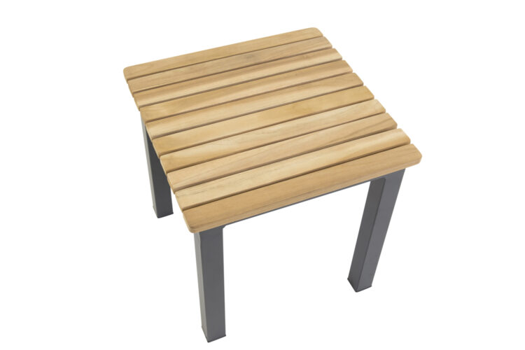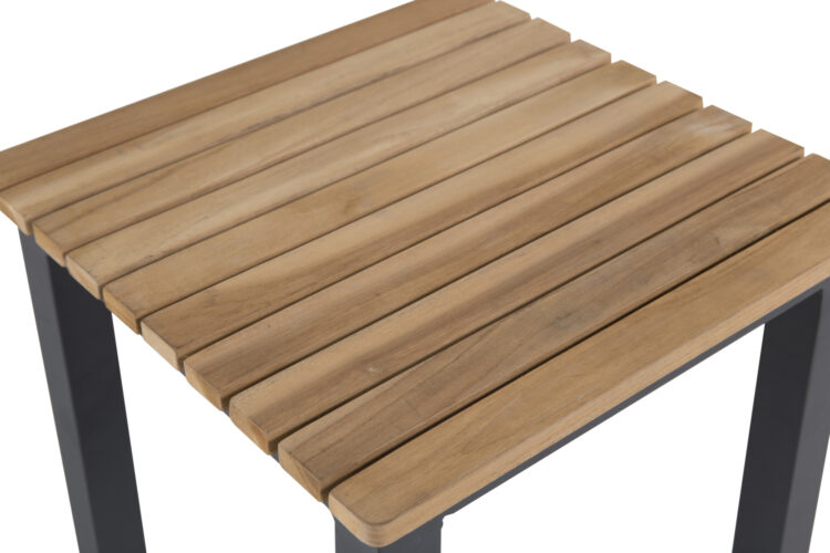Mexico – ett schysst kvadratiskt sidobord i raka nordiska former och trendiga färgskalor. Sidobordet har en vacker bordsskiva i teak och ett underrede i svart aluminium. Möblera på uteplatsen för att maximera förvaringsytan eller använd som sidobord bredvid solstolarna för extra bekvämlighet!
