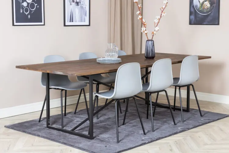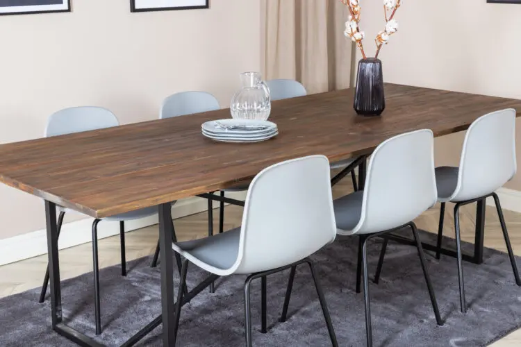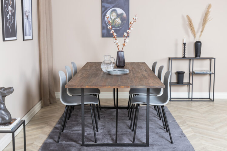 Möblera vardagsrummet i varma, jordnära kulörer med ett matbord från serien Padang. Den skandinaviska designen är genomtänkt med en rustik bordsskiva i teak och smala bordsben i svart metall. Med sin klassiska, stilrena look är Padang ett flexibelt, rektangulärt matbord som passar in i de flesta miljöer och enkel att matcha med övrig inredning. Skapa en charmig mittpunkt för dig och din familj att samlas runt!