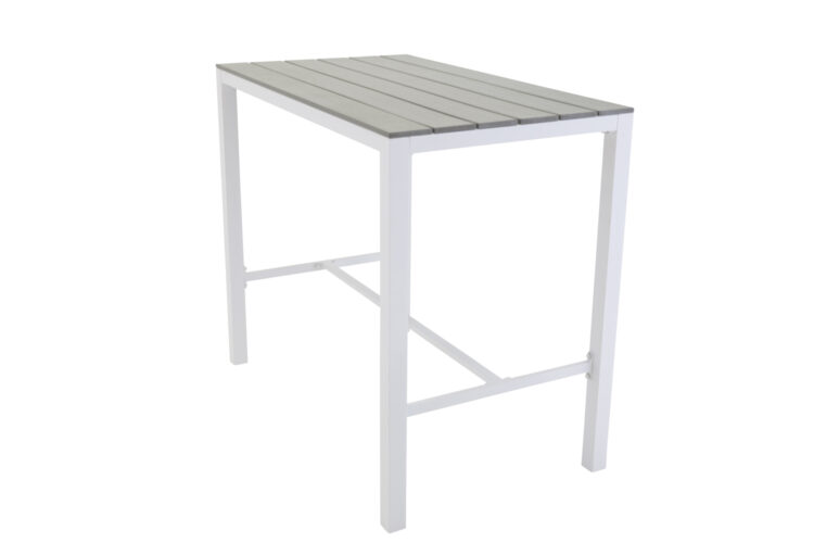 Gör dig redo för sommarens uteliv med ett läckert barbord från serien Parma! Bordsskivan är i slitstarkt aintwood i en behaglig grå nyans och underredet i vit aluminum. Här kan du skapa en trivsam mittpunkt på uteplatsen som passar utmärkt både till soliga luncher och kvällens fördrinkar.