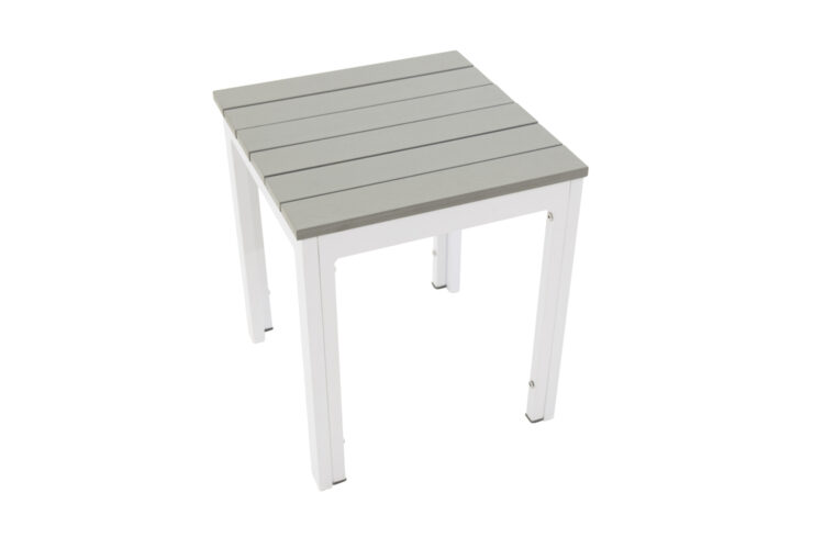 Ett praktiskt sidobord är precis vad som behövs på uteplatsen i sommar! Parma har en modern, kvadratisk design med en bordsskiva i grå aintwood och ett underrede i vit aluminium. Användningsområdet är brett och bordet fungerar utmärkt både som avlastningsyta, piedestal eller sidobord vid solstolarna. Dess nätta storlek och vikt gör dessutom bordet enkelt att flytta runt!