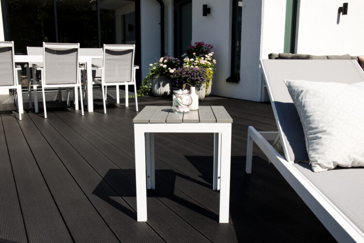 Materialet är framtaget för att användas utomhus då det är väderbeständigt och står emot både fukt och mögel. Aintwood är därför ett optimalt material för utomhusmöbler. Undvik skador på bordet genom att använda underlägg och låta bli att placera varma föremål direkt på ytan.