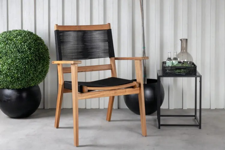 Att matcha svart och trä känns bara helt rätt! Stolen Peter blir garanterat ett blickfång på altanen tack vare sin moderiktiga konstruktion i acacia och sits i slitstarkt svart rep. En robust matbordsstol som kommer ge uteplatsen ett pampigt uttryck.