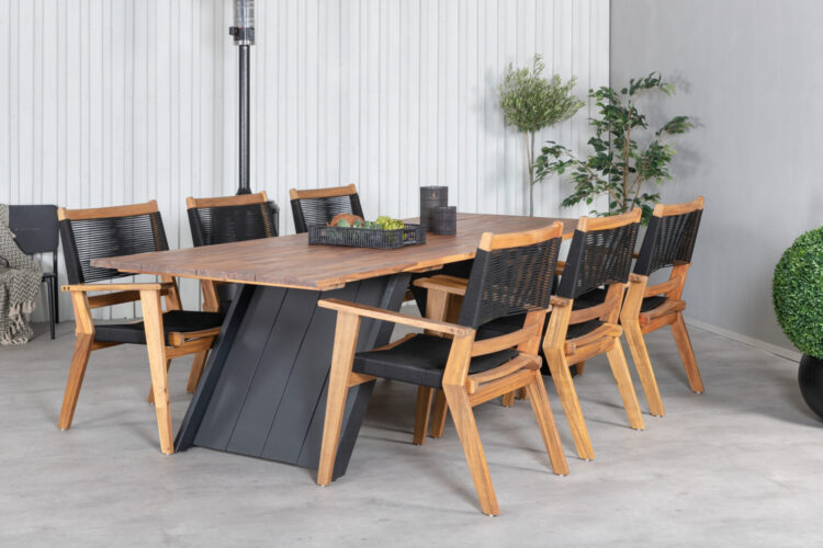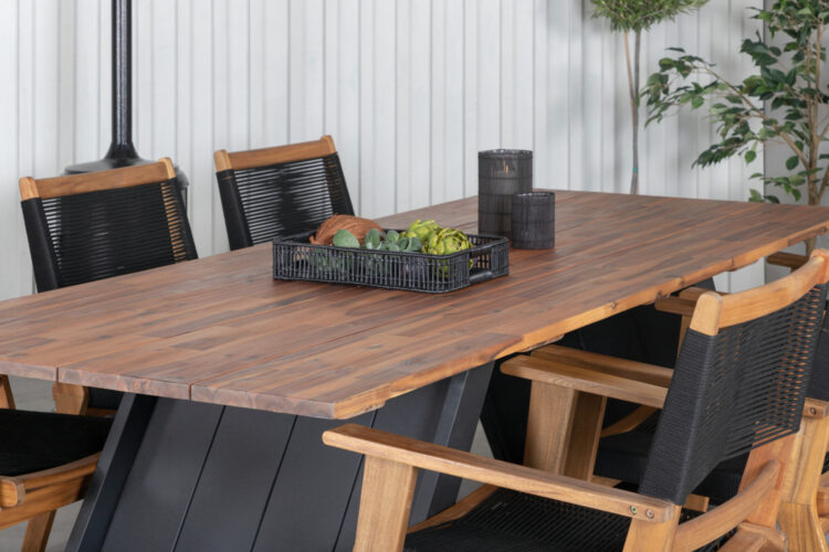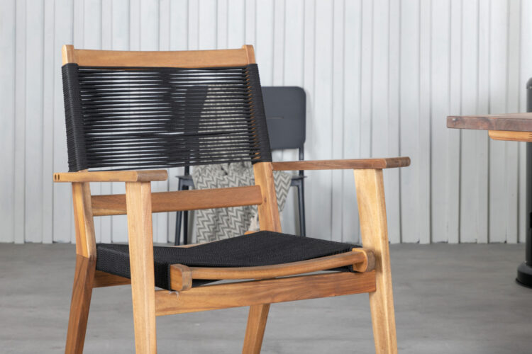 Att matcha svart och trä känns bara helt rätt! Stolen Peter blir garanterat ett blickfång på altanen tack vare sin moderiktiga konstruktion i acacia och sits i slitstarkt svart rep. En robust matbordsstol som kommer ge uteplatsen ett pampigt uttryck.