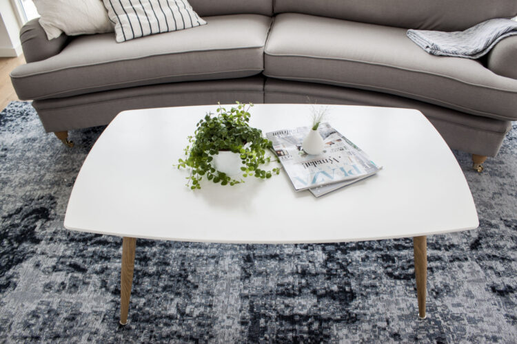 Rymligt soffbord med en bordsskiva i MDF och ben i metall.