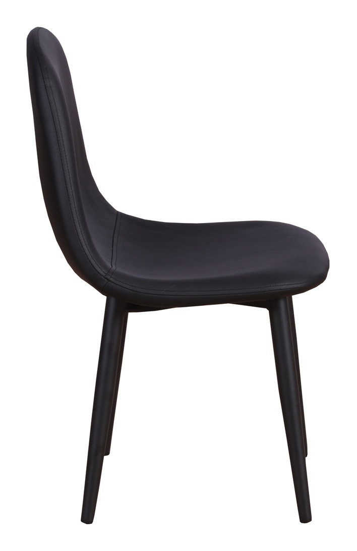 Matstol för barn i en helklädd design med ben i svart pulverlackerad metall samt med en lätt rundad rygg och sits i grått sammetstyg. Lättare montering krävs.