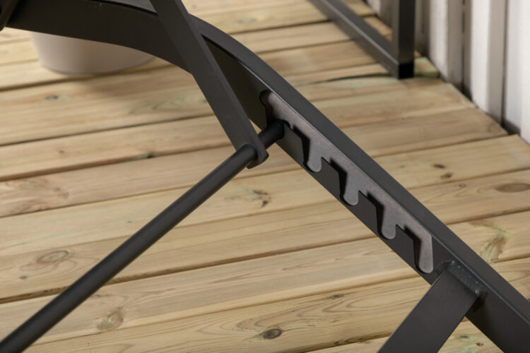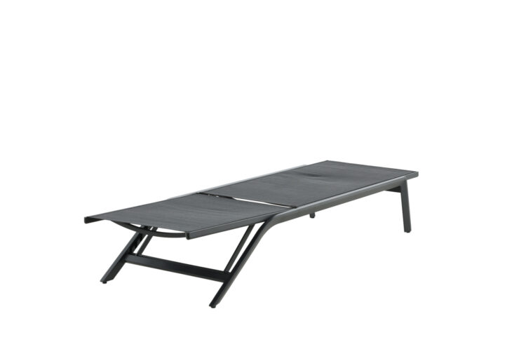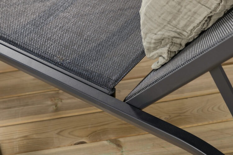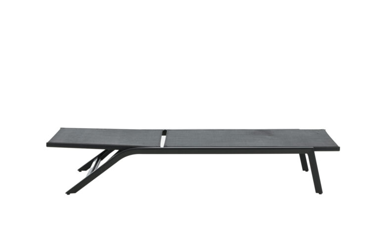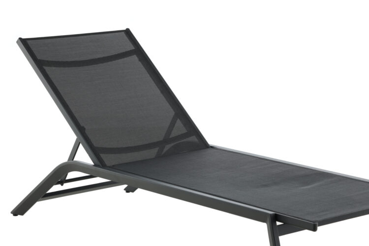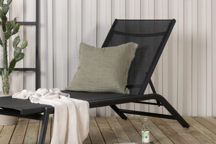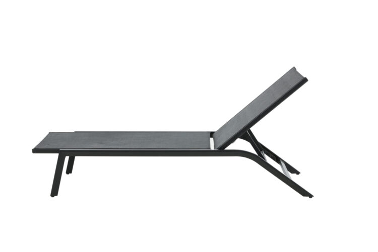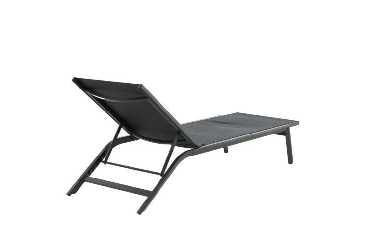 En perfekt solsäng att njuta av solen i, läsa en bok eller lyssna på en podcast. Sängen är gjord i svartlackerad aluminium och textilene med ett ryggstöd du själva justerar för att passa dig bäst.