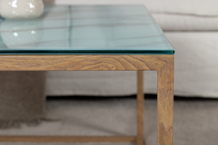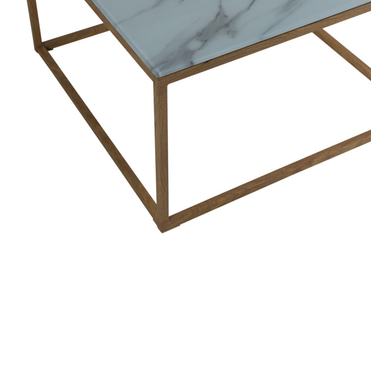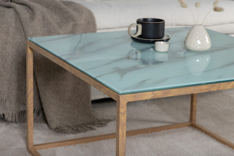 Fyrkantigt soffbord med ett stilrent underrede.