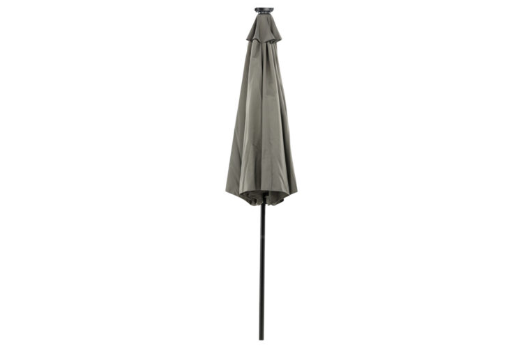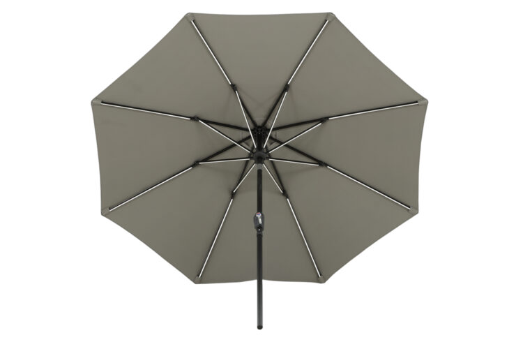 Ett fristående parasoll med grått tyg, perfekt för lata dagar i skuggan! Flytta runt det på din uteplats efter ditt behov. LED-belysningen ger ett mysigt sken på kvällarna.