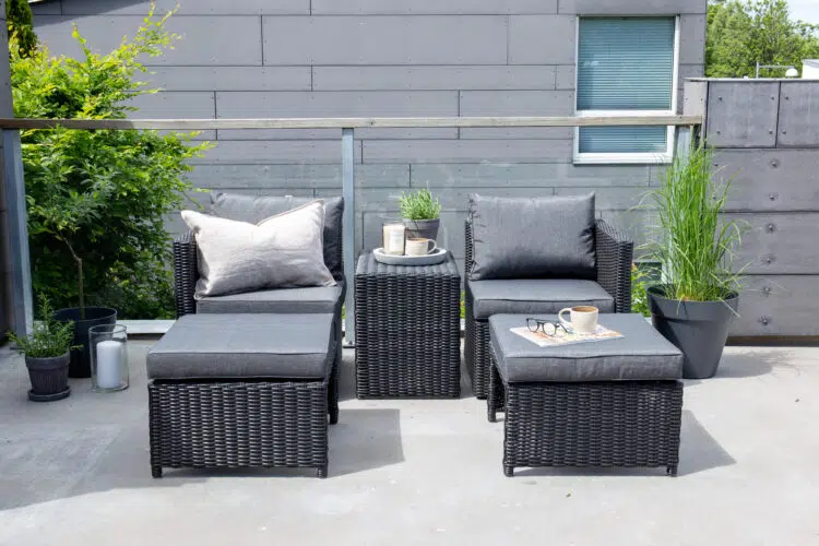 Konstrotting är ett plastmaterial som passar alldeles utmärkt för vårt skandinaviska klimat. Materialet är UV-beständigt och tåler väder och vind. Att det är UV-beständigt gör att möblerna inte bleknas, däremot rekommenderar vi alltid att förvara möblerna under ett möbelskydd eller på annat vis torrt och svalt – för att förlänga livslängden.