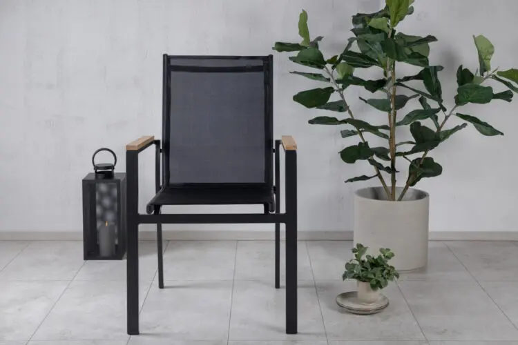 Texas, vår läckra matstol i skandinavisk design! De raka nordiska formerna ger dig en stilren stol som passar till alla tillfälle! Tillverkad i svart aluminium med en sits i textilene. Armstöden är dekorativa i teak vilket skapar en smakfull detalj. Stolen är stapelbar, för smidig förvaring. En slitstark stol som garanterat kommer göra succé på altanen i sommar!