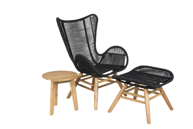 Tingeling, en smakfull robust fåtölj tillverkad i slitstarkt repmaterial. Tillsammans med tillhörande ottoman och sidobord i serien Chania får du en bekväm och snygg loungegrupp som står sig över tid. Ottomanen är tillverkad i rep, sidobordet är tillverkat i akacia. Njut av sommaren på allra bästa sätt!