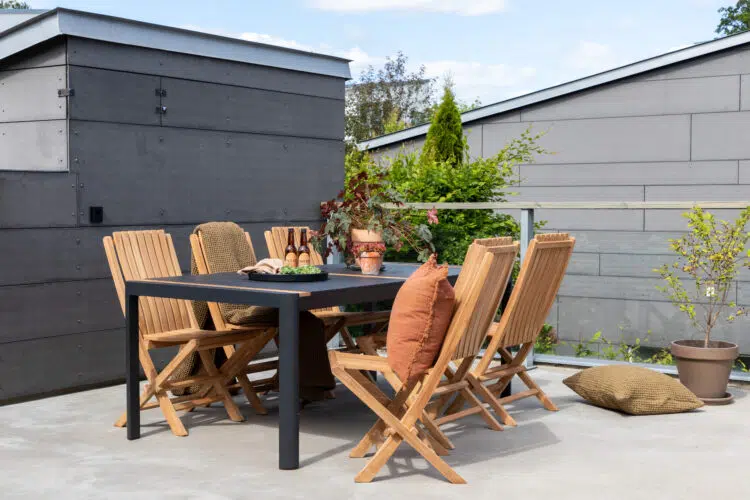 Våra teakmöbler produceras av certifierad teak som är odlad för ändamålet och inte skövlade från ömtålig regnskog. Som ett av de tåligaste träslagen innehåller teak mycket olja som sedvanligt behövs för att inte materialet ska spricka. Eftersom träslaget innehåller naturligt mycket behöver inte möblerna impregneras lika ofta.