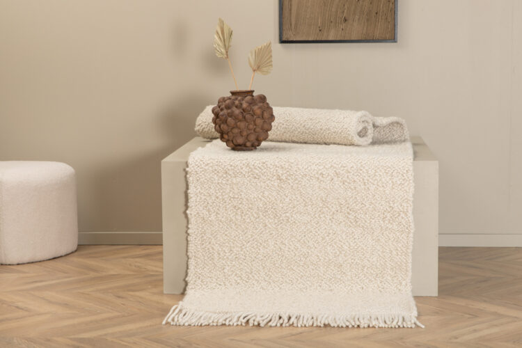 Skapa ett blickfång som imponerar och inred ditt vardagsrum mysigt med en exklusiv ullmatta! Mattserien Betina erbjuder handvävda ullmattor med en teknik som ger mattan en härlig knut-textur med stor komfort att gå på och återfinns i olika storlekar och kulörer – välj vad som passar ditt hem bäst! Den här rektangulära skönheten har en modern design och inbjudande egenskaper. Den vita kulören ger en värme till rummet och den benvita fransraden på kortsidorna blir en läcker detalj. Materialet känns både lyxigt och medför flera attraktiva egenskaper som ger dig en trogen matta över tid. Gosa ner fötterna och njut av ett modernt blickfång i vardagsrummet! Mattans mått: 250×80 cm.