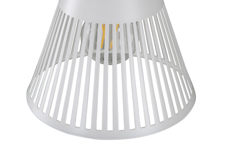 Skapa ett modernt lyster med en taklampa i industriell design. Gruid har en öppen konform för behagligt ljusutsläpp vilket också synliggör glödlampan väldigt smakfullt. Tillverkad av vitmålat järn och trä upptill. Höj inredningen i köket eller vardagsrummet och njut av en trivsam belysning. Mått: Diameter: 18 cm. Höjd (lampskärm): 25 cm. Strömbrytare, krok, vajer och ljuskälla ingår ej. Lättare montering krävs.