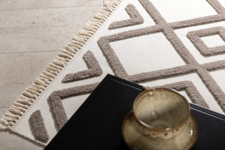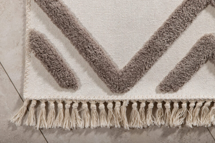 Inred ditt hem med en matta som ger ett iögonfallande intryck! Polyestermattan från serien Towa är en vacker handvävd matta i dekorativ design med färgbas i vitt. Mattans mönster i nougatfärgad nyans har en något högre lugg som ger en läcker dimension till rummet. Utförande med fransar skapar ett kompletterande helhetsintryck till mattans kraftfulla utsmyckade mönster och ger ett modernt lyft i hemmet. Mattans mått: 160x230cm.