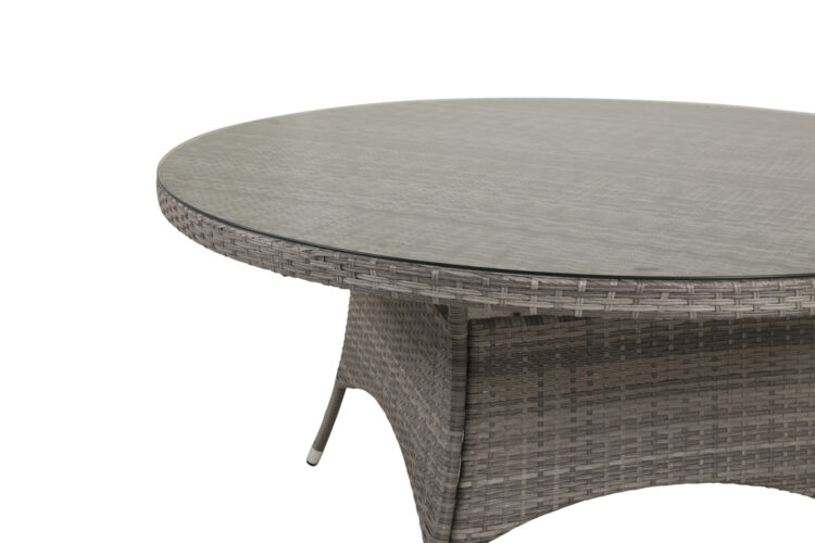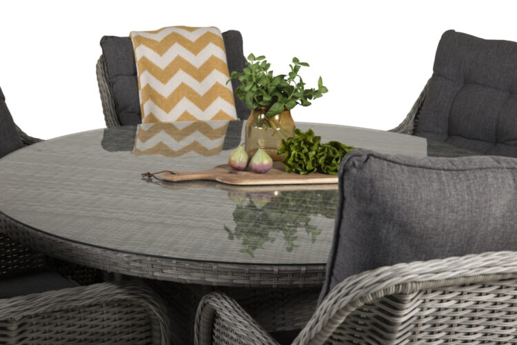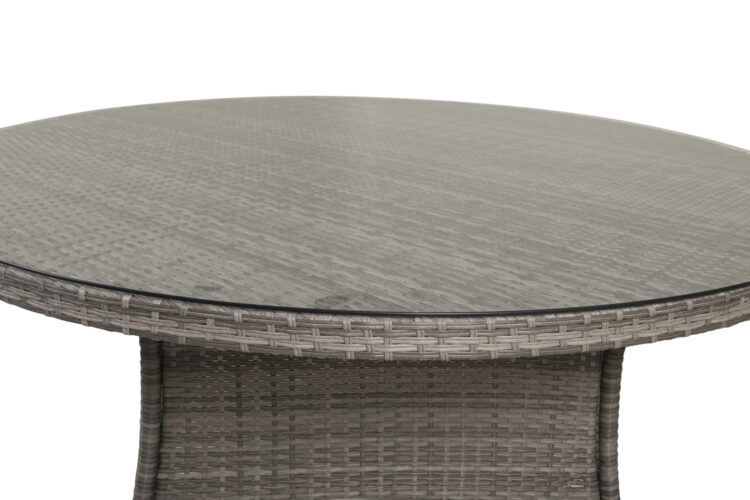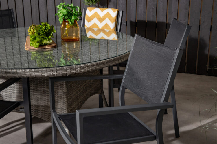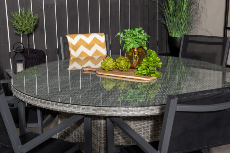 Volta är ett runt matbord i robust design som gör ett hållbart och charmigt intryck! Bordsskivan är i stilrent glas och underredet i slitstark, grå konstrotting. Möblera i uterummet eller på uteplatsen och låt middagarna utomhus bli dagens höjdpunkt – här hamnar ingen på kanten!