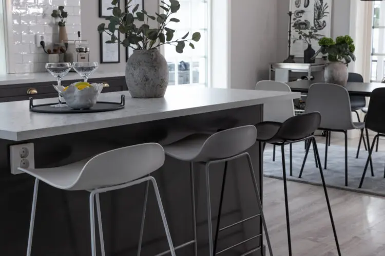 En stilren matstol i minimalistisk skandinavisk design från serien Wave kommer garanterat göra succé vid barskänken! Den här barstolen kommer i en behaglig grå kulör, med grå pulverlackerad metallställning, integrerat fotstöd för extra sittkomfort och låg rygg och sits i grå helgjuten plast. Lättare montering krävs.