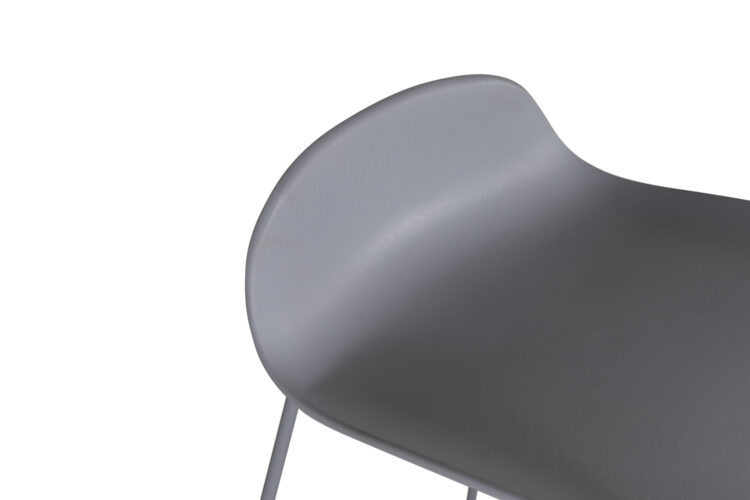 En stilren matstol i minimalistisk skandinavisk design från serien Wave kommer garanterat göra succé vid barskänken! Den här barstolen kommer i en behaglig grå kulör, med grå pulverlackerad metallställning, integrerat fotstöd för extra sittkomfort och låg rygg och sits i grå helgjuten plast. Lättare montering krävs.