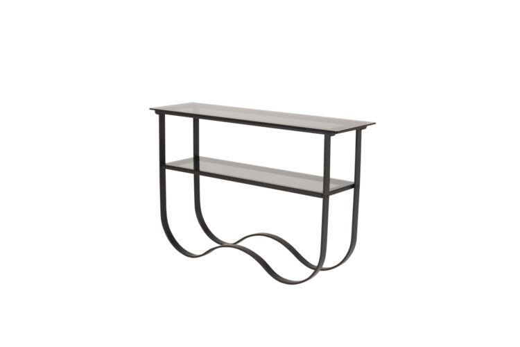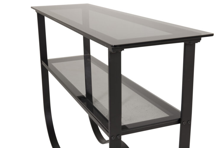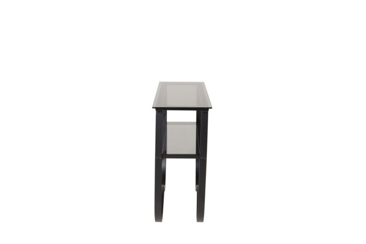 Trendigt och praktiskt sidobord i serien Wavy med dekorativt underrede i svart metall och stilren bordsskiva i glas. Den genomtänka helhetsdesignen med smal, avlång form gör att sidobordet lätt placeras snyggt mot väggen. Det fungerar utmärkt både som modern inredningsdetalj med läckra dekorationer och för smart förvaring. Låt ett schysst avlastningsbord som detta pryda valfritt rum och ta hand om svårplacerade föremål! Tillhör Furniture Fashion.