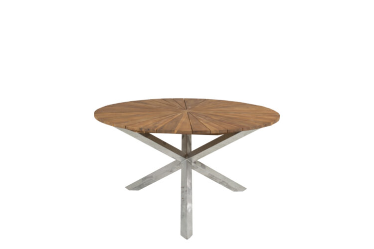 Vårt runda matbord Zenia har en modern industriell design med en bordsskiva i brun acacia och en stomme i silvrigt stål. Dess praktiska och slitstarka material gör att bordet lämpar sig lika bra i uterummet som i trädgården. Följ våra skötselråd för bästa hållbarhet och njut av sommaren i trivsamt sällskap runt ett läckert matbord där ingen hamnar på kanten.