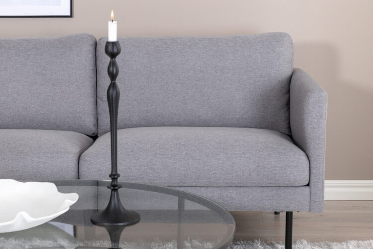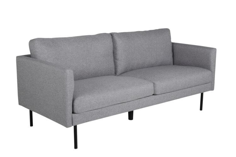 Soffserien Zoom imponerar med kombinationen av hög sittkomfort och stilsäker design. Den här 2-sitssoffan i behaglig grå klädsel ger en otroligt hemtrevlig känsla till ditt hem och kommer garanterat förlänga soffstunderna. Designen är tidlös med raka nordiska former och höga, smala metallben som bidrar till ett stilrent intryck. Ge dig själv en skön plats att slappna av på och låt soffan bli vardagsrummets hjärta! Bredd: 181 cm, Djup: 54 cm, Höjd: 80 cm.